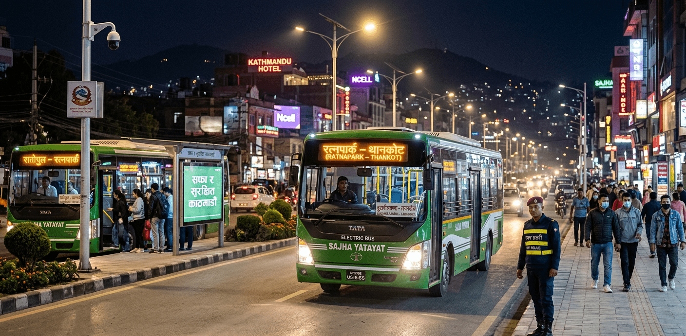 काठमाडौँ, वैशाख १ — नयाँ वर्ष २०८३ को अवसर पारेर काठमाडौँ महानगरपालिका ले सार्वजनिक यातायात क्षेत्रमा महत्वपूर्ण पहल गर्दै रात्रिकालीन विद्युतीय बस सेवा सुरु गर्ने घोषणा गरेको छ। यो सेवा साझा यातायात सँगको सहकार्यमा सञ्चालन हुनेछ।
